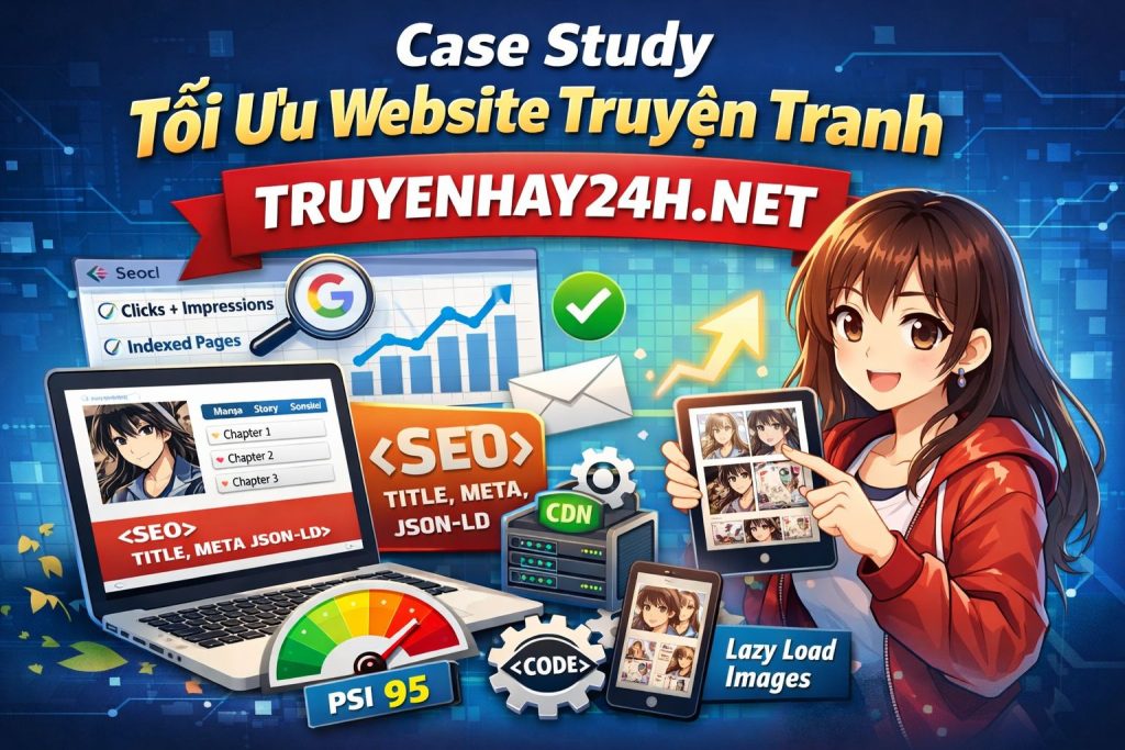 Chúng tôi triển khai tối ưu kỹ thuật & SEO cho một website truyện tranh có lượng trang rất lớn (hàng ngàn truyện, hàng chục ngàn chương). Bài toán không chỉ là “lên top”, mà là làm sao để Google hiểu đúng cấu trúc, crawl/index hiệu quả, và người đọc có trải nghiệm mượt trên mobile.